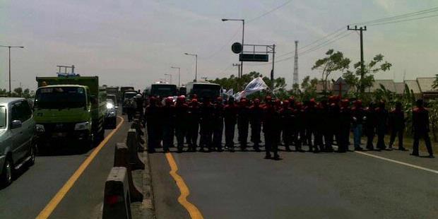Dalam aksinya, buruh berjalan kaki dari pintu keluar tol Kebomas sampai Jalan Dr Wahidin Sudirohusodo di bawah tol Gresik-Surabaya. Akibat aksi ini, arus lalu lintas tersendat.